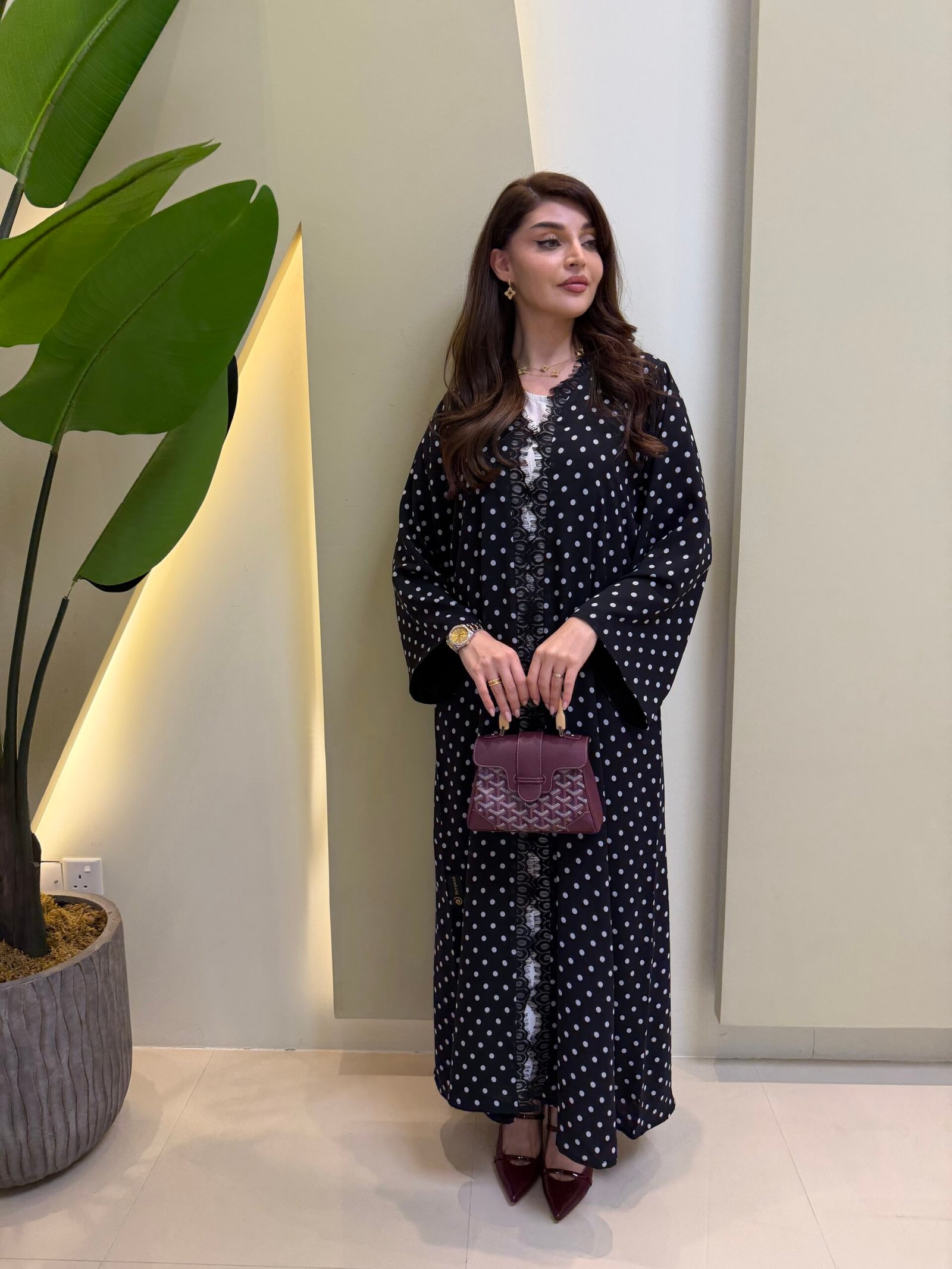 Fabric : شيفون مبطن بخام اسود مع تفاصيل ناعمة بالدانتيل